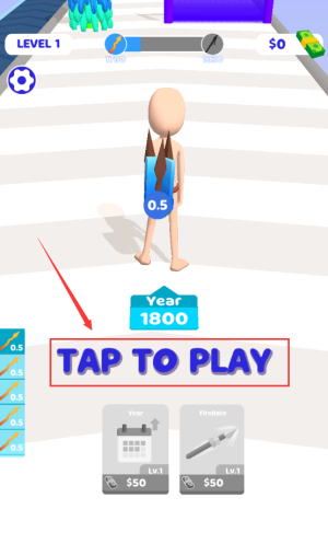 1、點(diǎn)擊紅框TAP TO PLAY區(qū)域,開(kāi)始LEVEL1游戲挑戰(zhàn)。