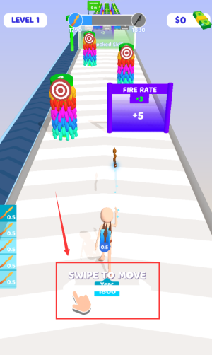 2、滑動(dòng)紅框SWIPE TO MOVE區(qū)域,控制角色移動(dòng)方向。