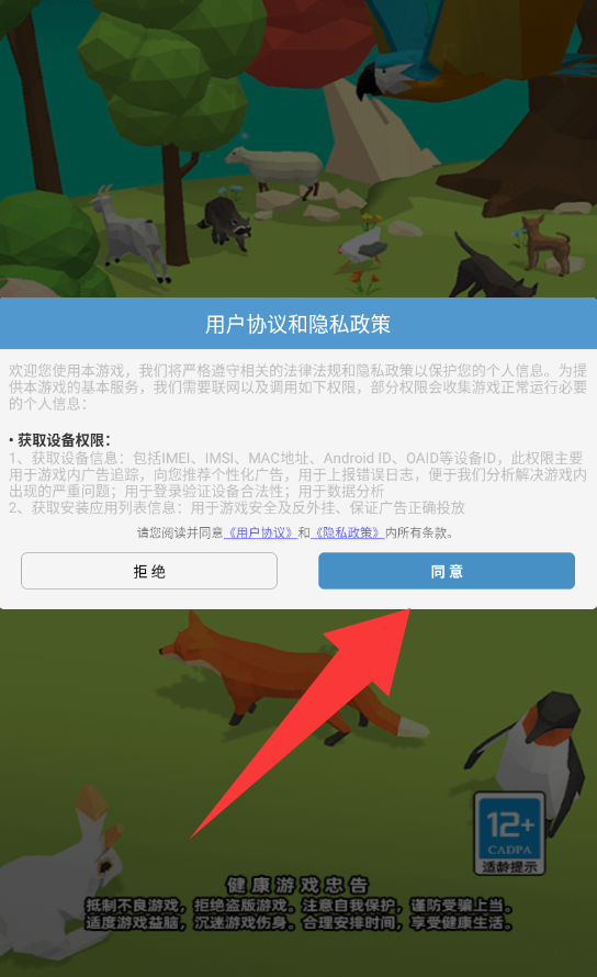 1、點(diǎn)擊用戶協(xié)議和隱私政策里的同意并繼續(xù)。