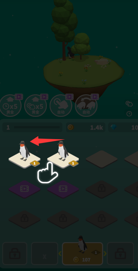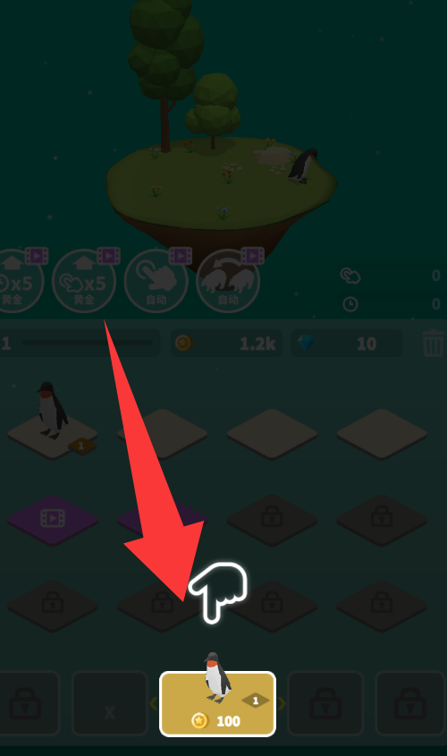 3、點(diǎn)擊紅色箭頭里的企鵝會(huì)消耗100金幣。