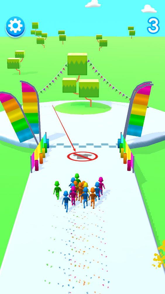 3、到達終點前,地上會畫著沒有顏色的小人是不準入內(nèi)的,所以要注意讓小人們都染上顏色。