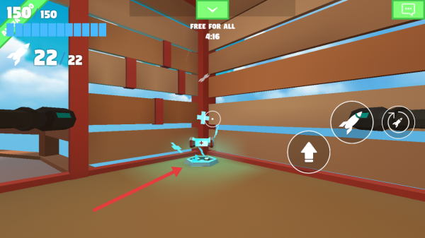 3、戰(zhàn)斗時,操控角色在建筑內(nèi)移動,借掩體躲攻擊,用右側(cè)火箭、飛彈等武器,攻擊其他玩家,爭取活到最后。