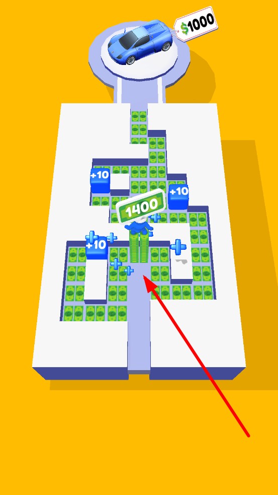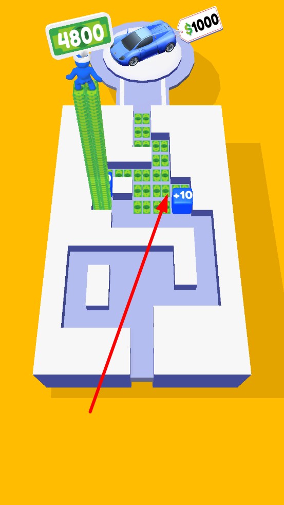 1、進(jìn)入關(guān)卡后,操控藍(lán)色角色在鈔票構(gòu)成的迷宮中移動(dòng),鎖定界面里大額鈔票的聚集區(qū)域,并且觸發(fā)增益方塊,開啟財(cái)富積累。