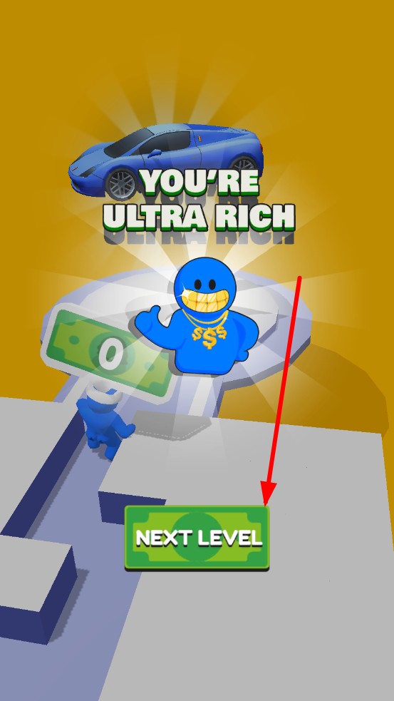 3、當(dāng)積累的財(cái)富達(dá)成階段里程碑后,穩(wěn)步抵達(dá)迷宮終點(diǎn)兌換頂級(jí)藍(lán)色超跑,隨即點(diǎn)擊界面按鈕,開啟更加復(fù)雜的新迷宮。