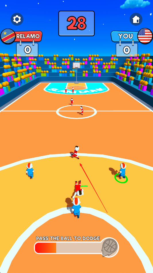 1、觀察對(duì)手站位,點(diǎn)擊隊(duì)友傳球躲避攔截,通過(guò)傳球轉(zhuǎn)移球權(quán),點(diǎn)擊哪個(gè)球員,籃球就會(huì)傳向哪一個(gè)球員。