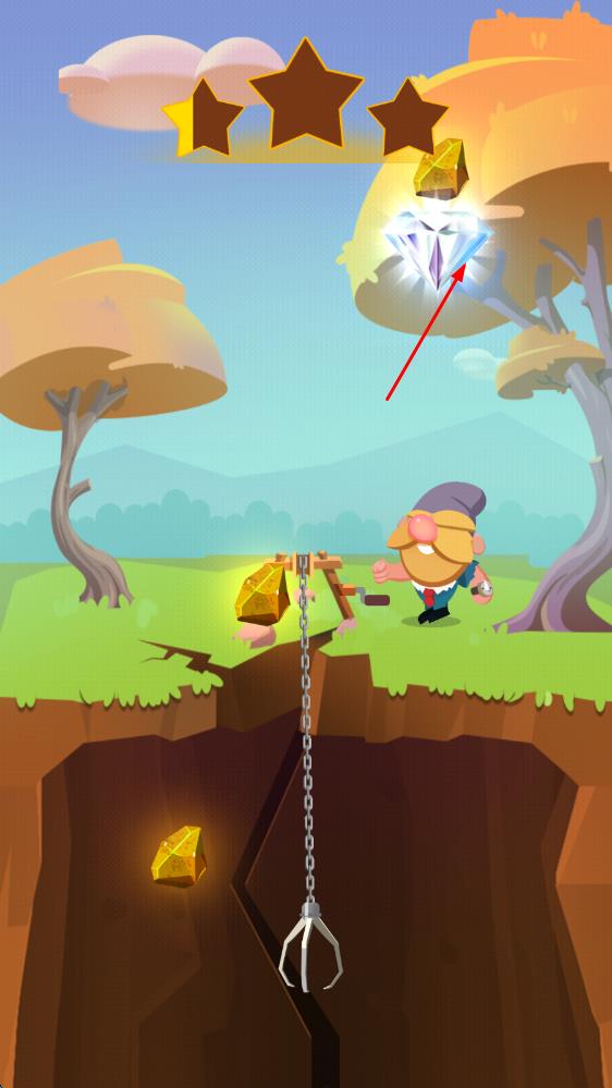 1、進(jìn)入挖掘機(jī)掘進(jìn)機(jī)的世界,先熟悉操作:點擊屏幕釋放鐵鏈鉤子,讓其深入地下裂縫,瞄準(zhǔn)鉆石、金幣等目標(biāo),嘗試首次捕獲。