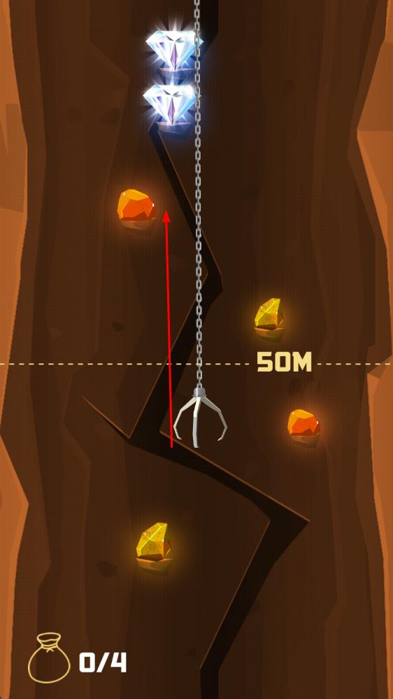 1、精準(zhǔn)挖掘操作:點擊屏幕控制鐵鏈鉤子的釋放與回收,瞄準(zhǔn)地下鉆石、金幣等資源,通過穩(wěn)定操作確保成功捕獲,避免碰撞地雷。