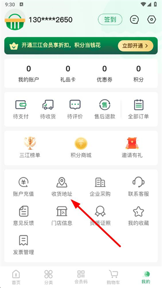 1、打開三江云菜app,點擊底部導(dǎo)航欄中的我的選項,進入相關(guān)頁面。