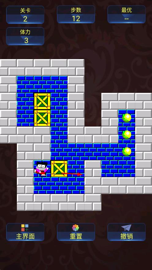 1、策略規(guī)劃挑戰(zhàn):每個關(guān)卡都需精心規(guī)劃推箱路線,稍有不慎便會陷入死胡同,促使玩家反復(fù)思考、調(diào)整策略,提升思維能力。