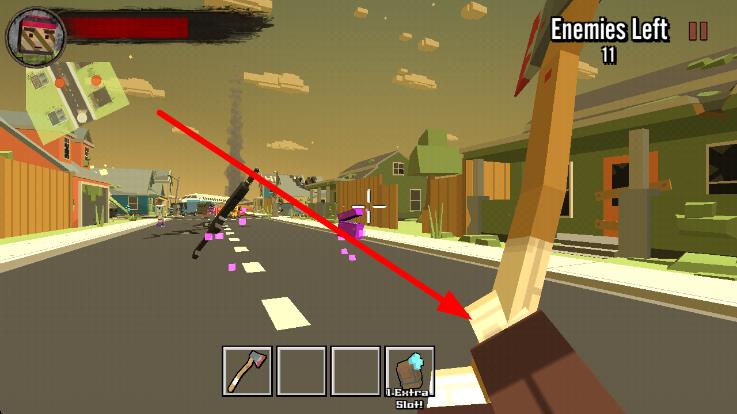 1、以第一人稱視角出現(xiàn)在像素風(fēng)格的場景中,周圍已有僵尸游蕩,需盡快尋找初始武器自保。