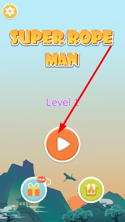 1、在SUPER ROPE MAN游戲主界面,點擊橙色帶白色三角形的播放按鈕,開始Level1的冒險。
