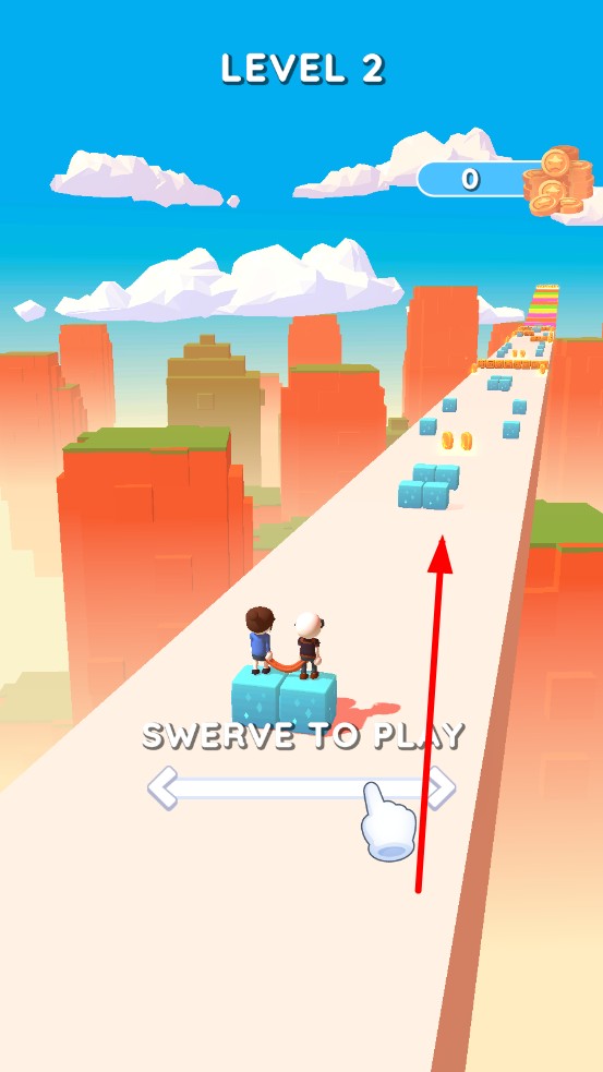 1、進入關(guān)卡后,滑動屏幕控制角色左右轉(zhuǎn)向,角色自動向前沖刺,需優(yōu)先收集藍色立方體,避開紅色陷阱塊。