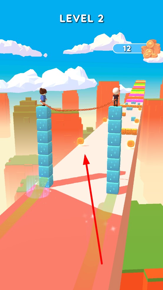 1、雙人協(xié)作機制:情侶角色通過鏈條綁定,移動需同步操作,搭建階梯時需分配方塊數(shù)量,配合失誤會導(dǎo)致階梯傾斜墜落,提升互動趣味性與挑戰(zhàn)。