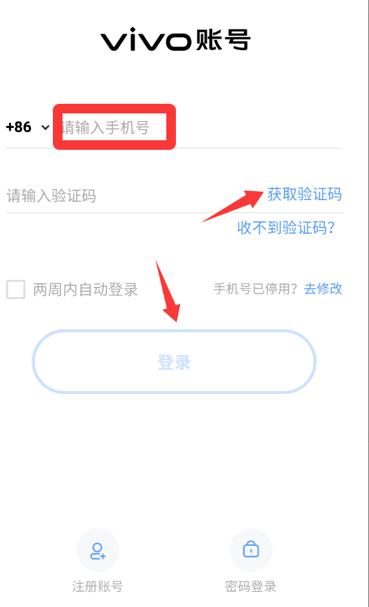 2、輸入電話號碼獲取驗(yàn)證碼然后點(diǎn)擊登錄。
