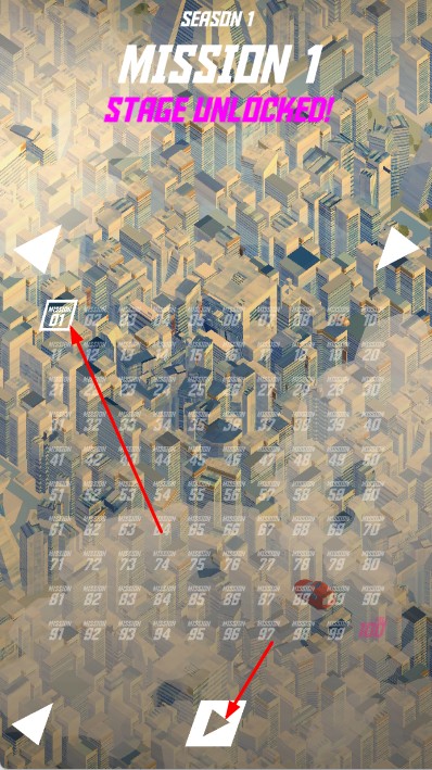 1、進入游戲,點擊開始按鈕,在關卡選擇界面選MISSION1任務,開啟空戰(zhàn)挑戰(zhàn),進入戰(zhàn)機配置頁,選MAGPI-3戰(zhàn)機,搭配武器技能。