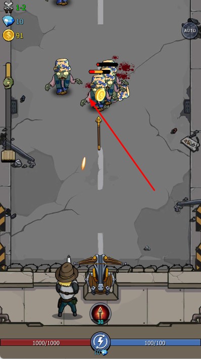2、戰(zhàn)斗中,操控英雄攻擊來(lái)襲僵尸,利用技能清理僵尸,阻擋其突破防線,同時(shí)收集金幣。