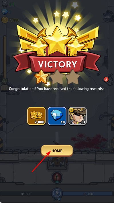 3、成功擊退一波波僵尸,達(dá)成勝利條件,獲取獎(jiǎng)勵(lì),點(diǎn)擊HOME返回主界面,升級(jí)軍團(tuán)。