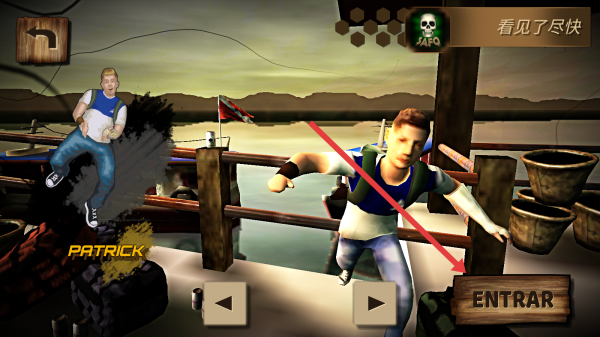 2、場景中操控角色靠近ENTRAR木牌并點擊,進(jìn)入新區(qū)域,與Patrick一同推進(jìn)游戲進(jìn)程。