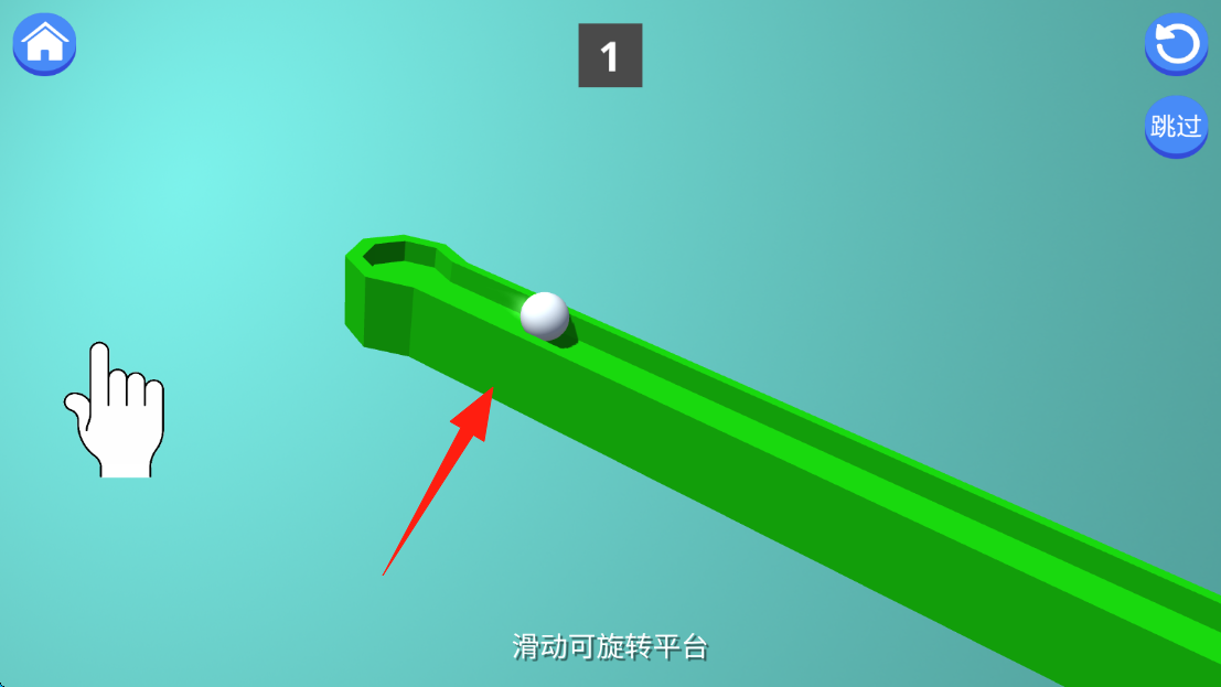 3、游戲中滑動(dòng)屏幕旋轉(zhuǎn)綠色平臺(tái),控制白色小球移動(dòng),保持平衡,讓球抵達(dá)終點(diǎn),滑動(dòng)移動(dòng)小球。