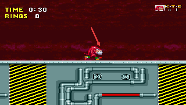 2、來到紅色地形關卡,長按前進鍵讓納克魯斯持續(xù)奔跑,遇到小障礙按跳躍鍵越過,保持節(jié)奏。