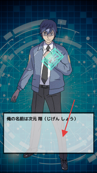 2、游戲中出現(xiàn)角色次元翔的自我介紹,閱讀“俺の名前は次元翔,了解角色信息,推進(jìn)劇情。
