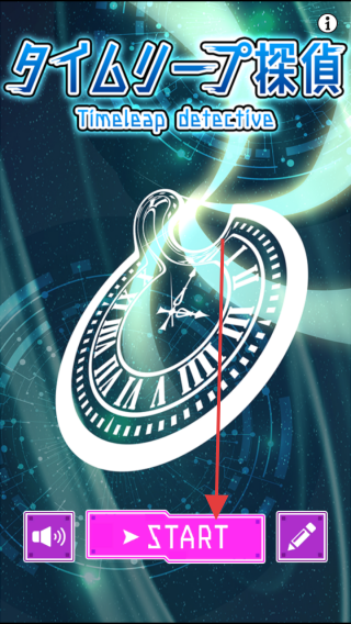 1、打開(kāi)タイムリープ探偵Timeleap detective游戲,點(diǎn)擊粉色START按鈕,開(kāi)啟時(shí)間跳躍偵探之旅。