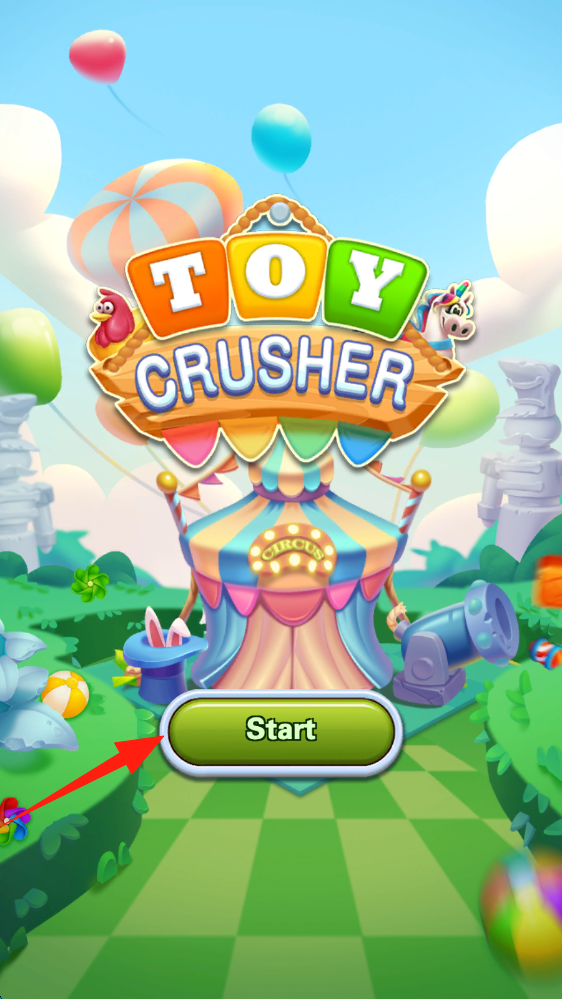 1、點(diǎn)擊Start按鈕進(jìn)入游戲,開啟Toy-Crusher的消除冒險(xiǎn),準(zhǔn)備挑戰(zhàn)趣味關(guān)卡。