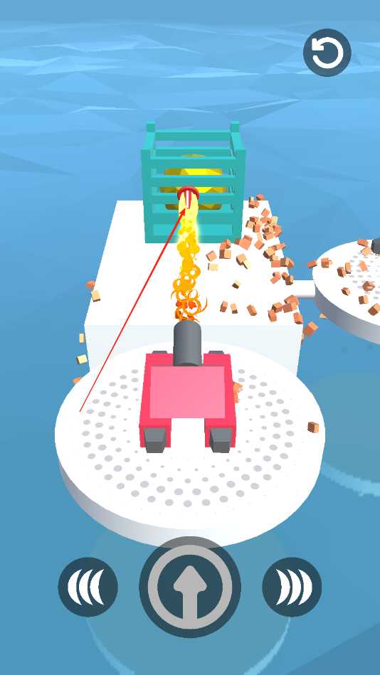 1、點擊開始之后,點擊發(fā)射鍵,炮臺則會發(fā)射炮彈將前面的物體轟炸掉,即可進入下一關(guān)。