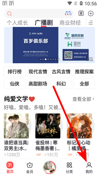 1、在喜馬拉雅首頁(yè),點(diǎn)擊右下角我的選項(xiàng),進(jìn)入個(gè)人中心界面。