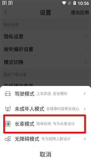4、在模式選擇列表中,點(diǎn)擊長(zhǎng)輩模式選項(xiàng),即可開啟長(zhǎng)輩模式。