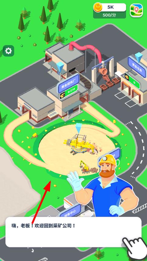 1、進入游戲后選擇初始礦區(qū),操控挖掘機挖掘礦石,將礦石運輸至加工廠兌換資金,熟悉挖礦與資源變現(xiàn)的基礎(chǔ)流程。