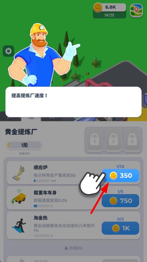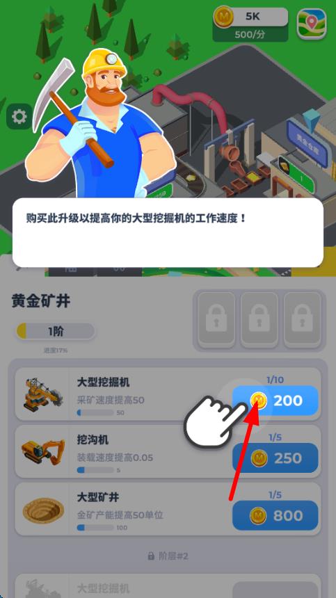2、設(shè)備升級體系:包含不同型號的挖掘機、礦石加工設(shè)備等,可通過資金升級提升挖礦效率與資源轉(zhuǎn)化率,助力礦業(yè)規(guī)??焖贁U大。