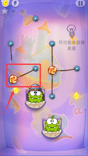 2、利用氣泡、橡皮筋等道具改變糖果軌跡,有時(shí)需要彈跳或推動(dòng),合理使用才能讓糖果經(jīng)過(guò)特殊區(qū)域并收集三顆星星。