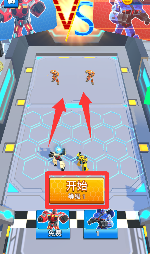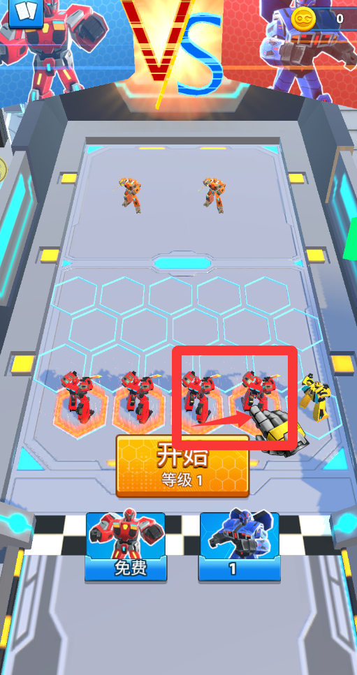 3、點(diǎn)擊長按移動紅色框框里的兩個機(jī)器人合體。