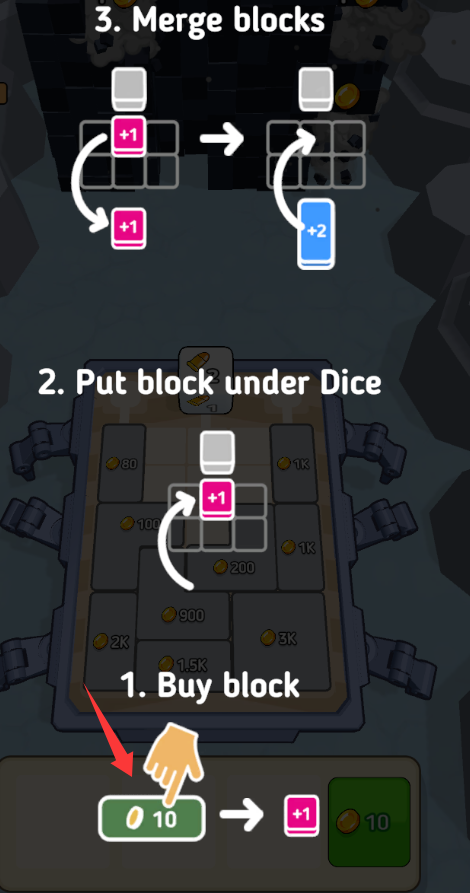 2、購買方塊將方塊方在骰子下方合成方塊。