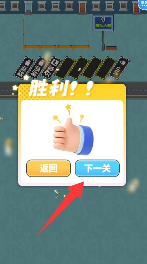 4、恭喜你通關(guān)了,給個(gè)大拇指你,點(diǎn)擊下一關(guān)繼續(xù)。