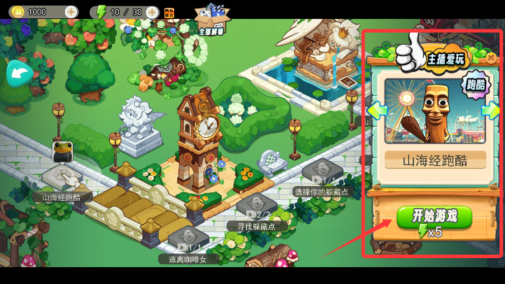 2、從游戲大廳進入"山海經(jīng)跑酷"模式,點擊挑戰(zhàn)鍵即可載入特色賽道場景。
