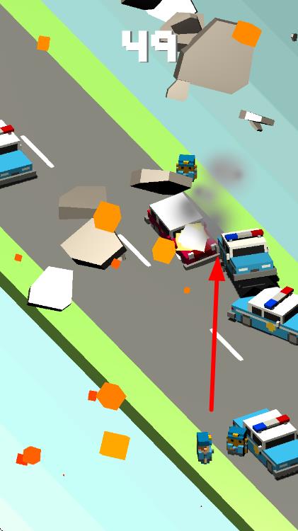 3、遇到警車圍堵時,靈活換道,讓紅色汽車撞擊警車,突破圍堵,同時注意躲避路障、石塊,爭取更高分?jǐn)?shù)。
