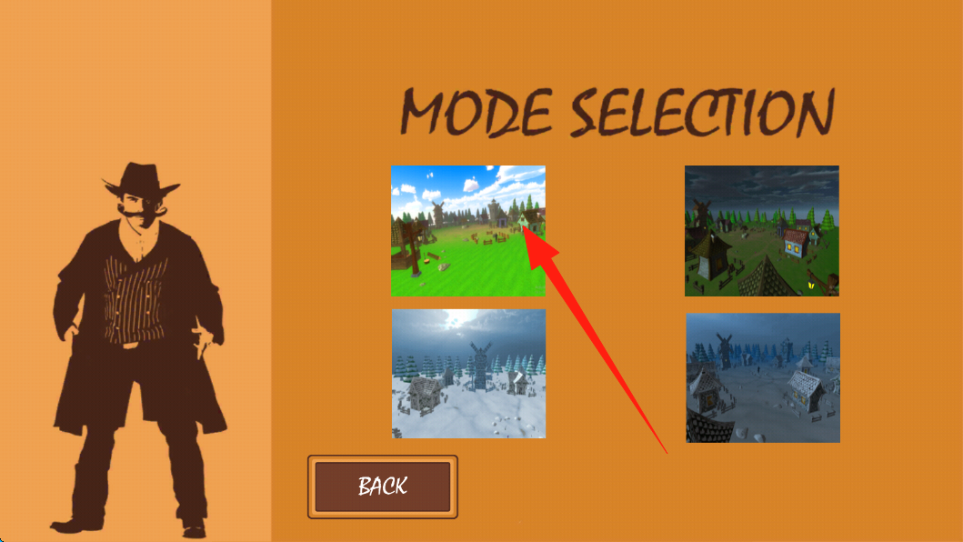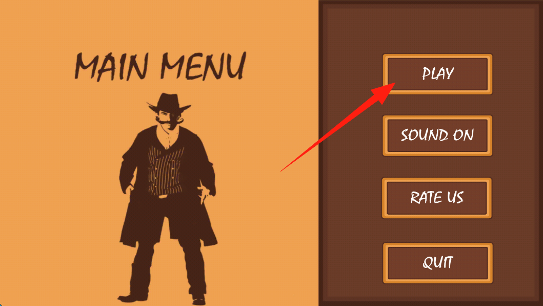 1、在主菜單點擊PLAY,進入模式選擇界面,開啟西部射擊游戲,點擊開始游戲。