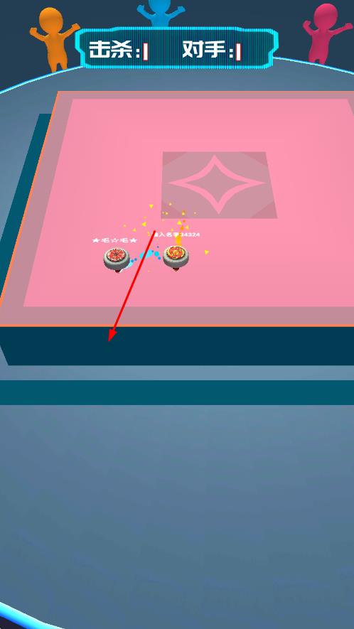 1、進(jìn)入游戲后選擇初始陀螺角色,在競技場中調(diào)整發(fā)射角度與力度,點(diǎn)擊屏幕將陀螺發(fā)射至戰(zhàn)斗區(qū)域開啟對決。