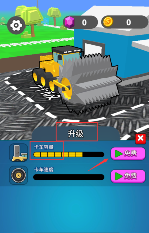 4、點(diǎn)擊紅框卡車升級(jí),提高運(yùn)輸容量和速度。