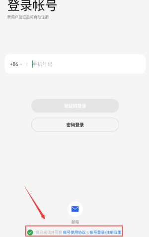 3、勾選紅框協議選項,同意條款繼續(xù)登錄。