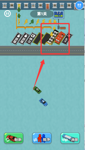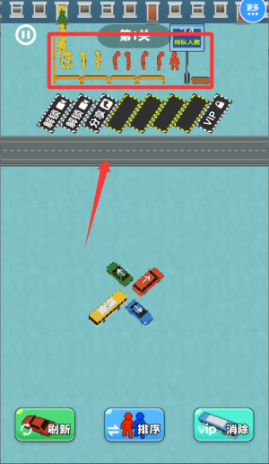 2、高級模式中可激活三輛車的待機隊列,通過預(yù)判乘客顏色變化提前部署車輛,實現(xiàn)連續(xù)快速接送獲得連擊加分。
