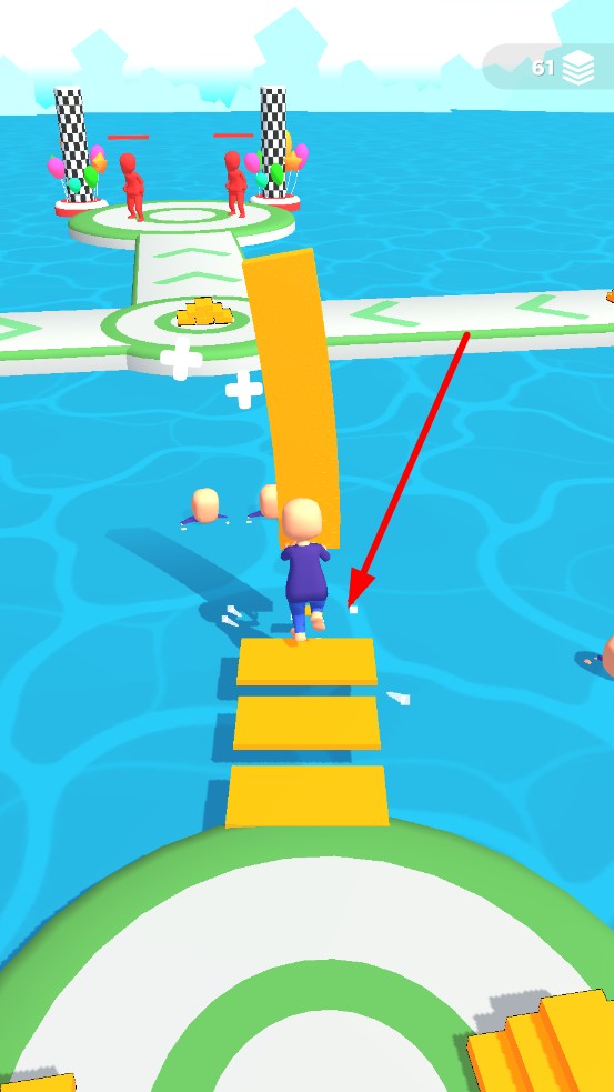 1、開局操控紫色小人移動,靠近黃色方塊自動收集,點擊屏幕堆疊方塊鋪路,收集更多的方塊,為后續(xù)做好準(zhǔn)備。
