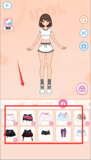 1、進(jìn)入游戲后先打開(kāi)衣柜界面,滑動(dòng)瀏覽各種服裝分類,比如裙子、頭飾或鞋子,找到喜歡的款式點(diǎn)一下。