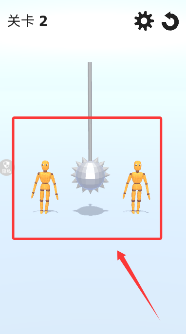 4、操作帶刺的鐵球擺動(dòng),精準(zhǔn)擊中兩個(gè)目標(biāo)即可順利通關(guān)。