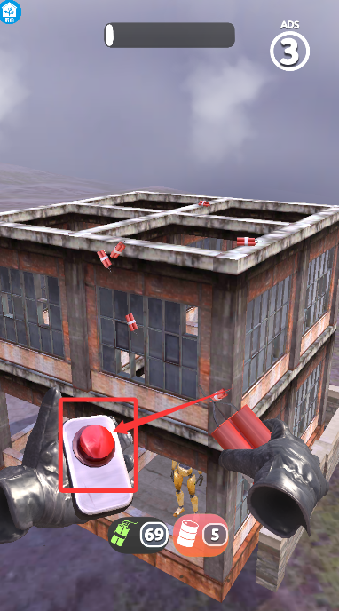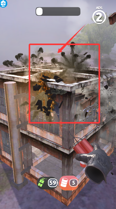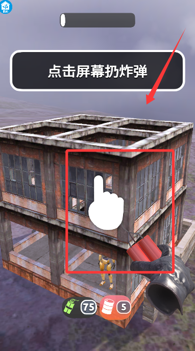 1、游戲開始后,根據(jù)指引點擊屏幕,將爆破物投向指定建筑物。