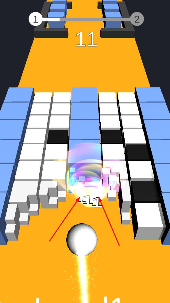 2、控制小球左右移動,撞擊路徑方塊完成破壞,清除障礙推進關(guān)卡進度。