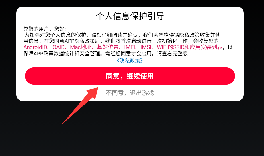1、點(diǎn)擊個人信息保護(hù)引導(dǎo)里的同意并繼續(xù)。