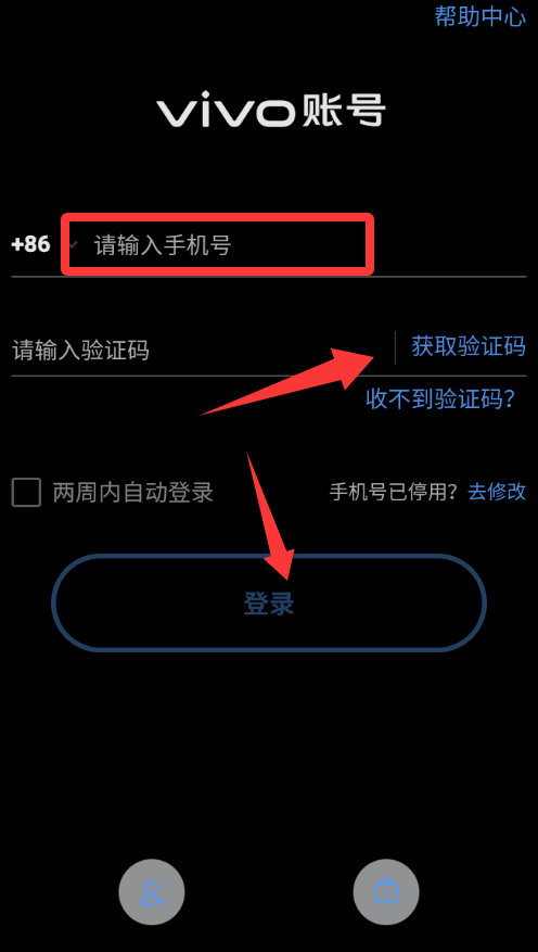 2、輸入手機(jī)號碼獲取驗證碼并登錄。